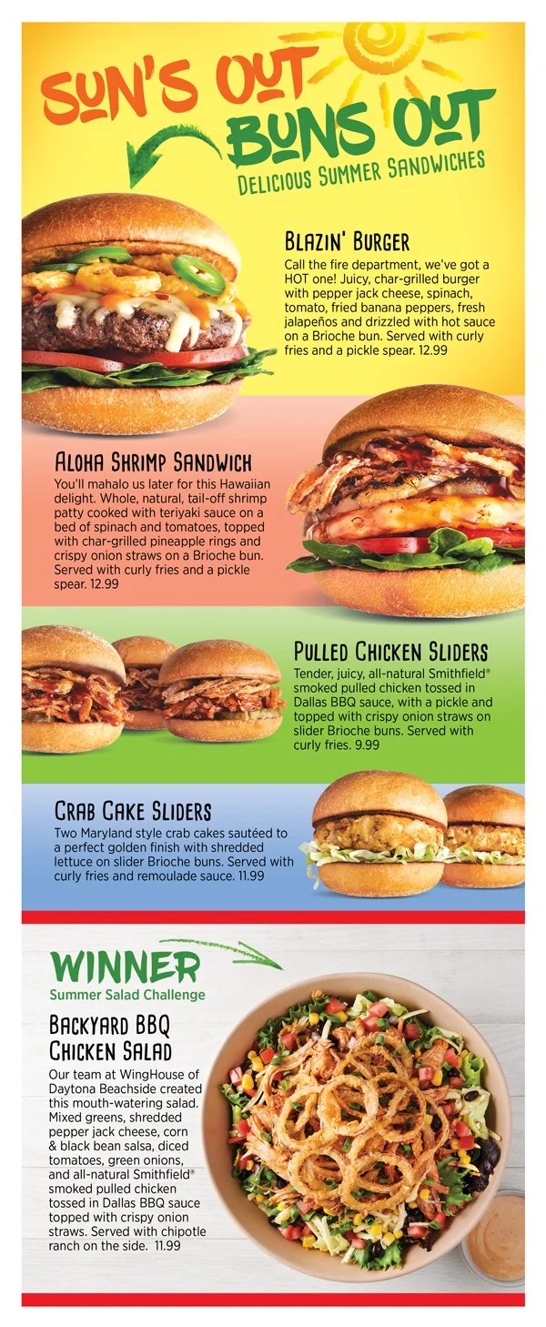 Summer LTO menu with new food offerings developed for this promotion.