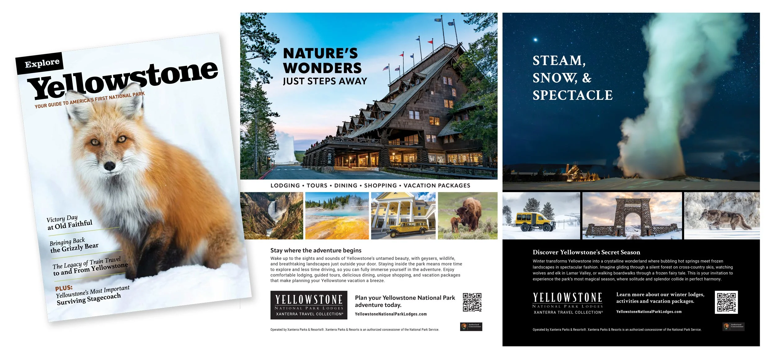 Magazine distributed in the Bozeman and Big Sky markets and online. Purpose: promote lodging at the Yellowstone National Park lodges for both summer and winter seasons.